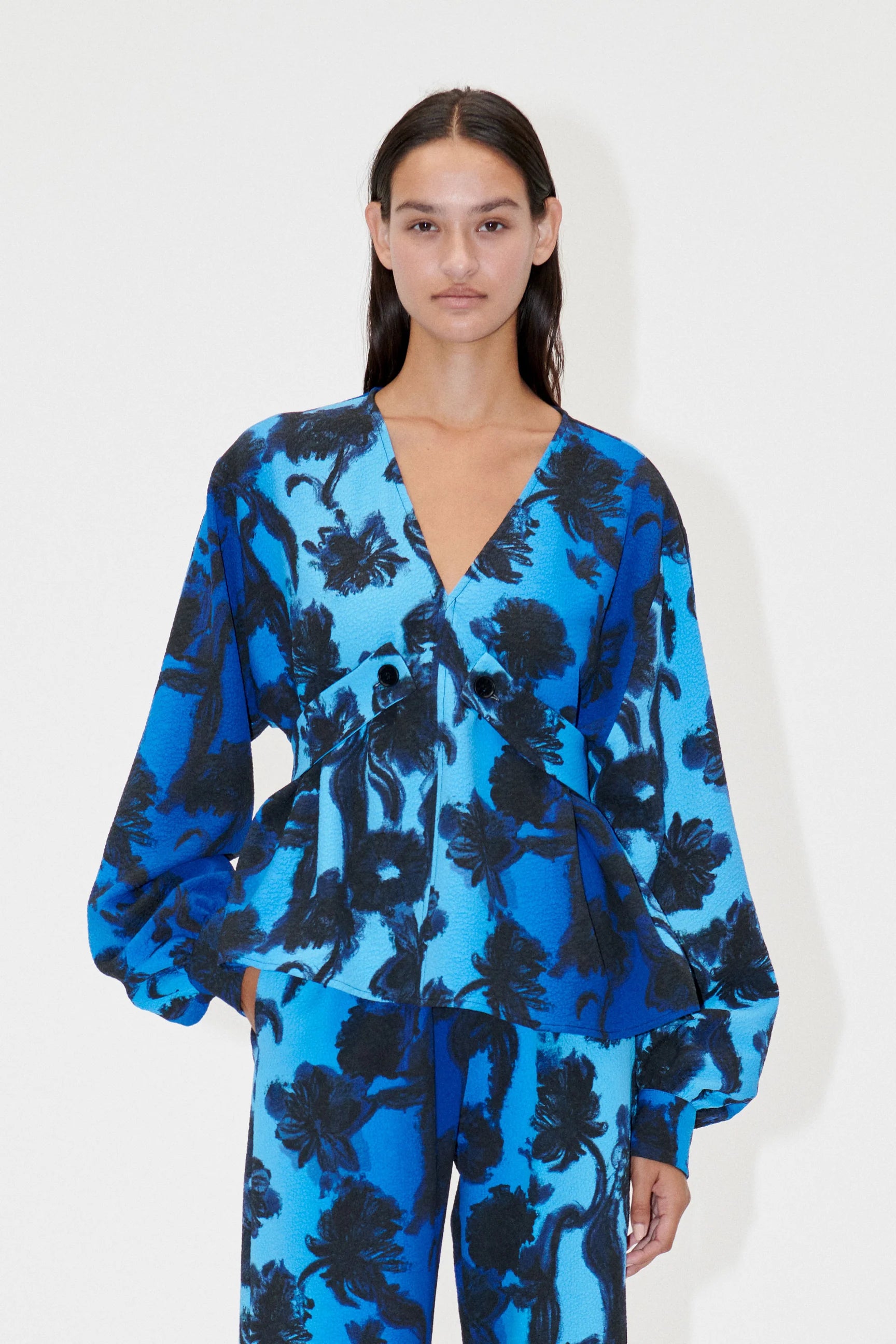 Sgarlene Blouse är den perfekta blusen för både kontor och fritid. Bär den med jeans och boots för smart casual-look, kombinera med kostymbyxor för elegant business-stil, eller matcha med kjol för festlig outfit. Den smickrande V-ringningen och de oversized ärmarna med muddar ger en silhuett som lyfter vilken outfit som helst.